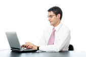 biznesmen z laptopem