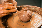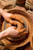 ręce garncarza, tworząc gliniany słoik