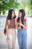 Zdjęcie "czarny długie włosy studia dziewczyna w mundurze stojąc na chodnik w zieleni park podczas słuchać muzykę z słuchawki." może być wykorzystywane do celów osobistych i komercyjnych zgodnie z warunkami zakupionej licencji Royalty-free. Obraz jest dostępny do pobrania w jakości wysokiej rozdzielczości do 5760x3840.
