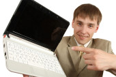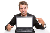 Zdjęcie "młody pracownik prezentuje laptopa" może być wykorzystywane do celów osobistych i komercyjnych zgodnie z warunkami zakupionej licencji Royalty-free. Obraz jest dostępny do pobrania w jakości wysokiej rozdzielczości do 5760x3840.