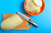 Zdjęcie "Zdrowe sfermentowane wegańskie jedzenie. Kawałki sfermentowanego ogórka i przypraw na desce do krojenia." może być wykorzystywane do celów osobistych i komercyjnych zgodnie z warunkami zakupionej licencji Royalty-free. Obraz jest dostępny do pobrania w jakości wysokiej rozdzielczości do 5760x3840.