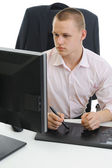 Zdjęcie "młody projektant działa na komputerze." może być wykorzystywane do celów osobistych i komercyjnych zgodnie z warunkami zakupionej licencji Royalty-free. Obraz jest dostępny do pobrania w jakości wysokiej rozdzielczości do 5760x3840.