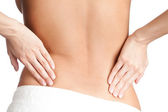 zbliżenie kobiety, trzymając ją z powrotem bolesne