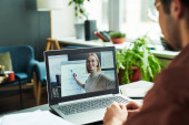 Zdjęcie "Bizneswoman w słuchawkach rozmawia z kolegami na wideokonferencji. Wieloetniczny zespół biznesowy pracujący z biura przy użyciu laptopa, omawiający raport finansowy swojej firmy" może być wykorzystywane do celów osobistych i komercyjnych zgodnie z warunkami zakupionej licencji Royalty-free. Obraz jest dostępny do pobrania w jakości wysokiej rozdzielczości do 5760x3840.