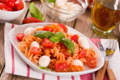 Zdjęcie "Conchiglie Tuńczyk makaron z sosem pomidorowym, ser feta i bazylia na drewnianym stole. zdrowa żywność" może być wykorzystywane do celów osobistych i komercyjnych zgodnie z warunkami zakupionej licencji Royalty-free. Obraz jest dostępny do pobrania w jakości wysokiej rozdzielczości do 5760x3840.