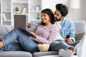 Zdjęcie "Para rodzinna korzystająca z laptopa i tabletu na kanapie" może być wykorzystywane do celów osobistych i komercyjnych zgodnie z warunkami zakupionej licencji Royalty-free. Obraz jest dostępny do pobrania w jakości wysokiej rozdzielczości do 5760x3840.