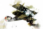 stary myśliwiec samolot odizolowany na białym tle sztuka vintage retro ilustracja