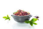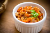 gotowana czerwona fasola z różnymi warzywami w misce