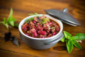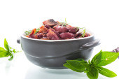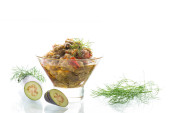 gotowane bakłażan kawior z przyprawami w misce izolowane na białym tle