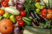 Zdjęcie "Asortyment świeżych dojrzałych warzyw organicznych. Zdrowe wegańskie lub wegetariańskie tło żywności. widok z góry" może być wykorzystywane do celów osobistych i komercyjnych zgodnie z warunkami zakupionej licencji Royalty-free. Obraz jest dostępny do pobrania w jakości wysokiej rozdzielczości do 5760x3840.