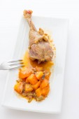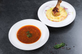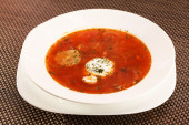 Tradycyjny ukraiński barszcz rosyjski z nogą kaczki