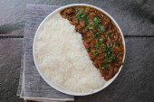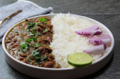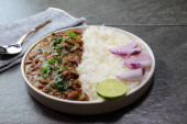 Zdjęcie "Talerz indyjskiej czerwonej fasoli Nerki curry lub Rajma Masala i ryż z przestrzenią kopiowania." może być wykorzystywane do celów osobistych i komercyjnych zgodnie z warunkami zakupionej licencji Royalty-free. Obraz jest dostępny do pobrania w jakości wysokiej rozdzielczości do 5760x3840.