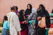 Erfoud, Maroko - 19 października 2019: Miejscowi mieszkańcy Drogi Tysiąca Kasztanów w swojej działalności na ulicach, Maroko, Afryka