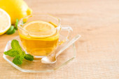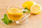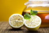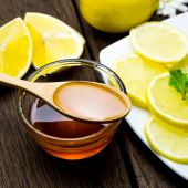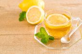 słoik miodu na plasterkach żółtych cytryn z zielonymi liśćmi mięty