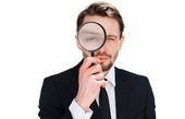biznesmen patrzący przez lupę