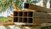 Drewniane deski układane są z końcową częścią ułożoną jeden na drugim