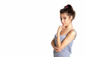 młode piękne dziewczyny stojącej pozowanie jak moda model na białym tle