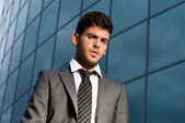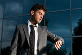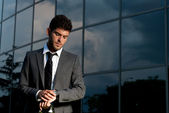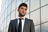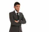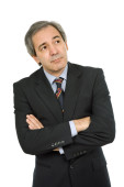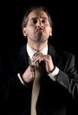 biznesmen dorosły poważne myślenie siedzi na ciemnym tle