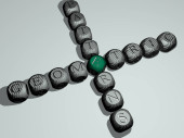 połączenie kryptografii zbudowanej przez litery sześcienne z najwyższej perspektywy, doskonałe do prezentacji koncepcyjnej. monety i bitcoiny