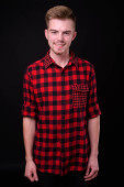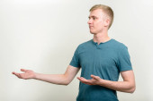 Młody przystojny biznesmen blond włosy, białym tle strzał studio