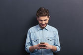 Młody przystojny biznesmen blond włosy, białym tle strzał studio