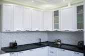 przytulna domowa atmosfera kuchni w odcieniach bieli i nowoczesnym stylu