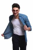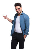 Zdjęcie "młody człowiek dorywczo, prezentując coś" może być wykorzystywane do celów osobistych i komercyjnych zgodnie z warunkami zakupionej licencji Royalty-free. Obraz jest dostępny do pobrania w jakości wysokiej rozdzielczości do 5760x3840.