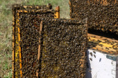 Zdjęcie "Pszczelarz trzymający plaster miodu pełen pszczół. Pszczelarz sprawdza szkielet plastra miodu w pasiece. Koncepcja pszczelarstwa" może być wykorzystywane do celów osobistych i komercyjnych zgodnie z warunkami zakupionej licencji Royalty-free. Obraz jest dostępny do pobrania w jakości wysokiej rozdzielczości do 5760x3840.