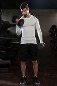 mężczyźni w siłowni, ćwiczenia z hantlami