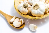 różne czosnek całe warzywa plastry nie obrane leży na drewnianym tle