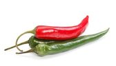 zestaw czterech poziomych papryk chili czerwony i zielony pod nea drewniane tło