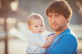 Zdjęcie "Portret rodziny szczęśliwy człowiek i niemowlę dziecko zabawy przez błękitne morze w sezonie letnim" może być wykorzystywane do celów osobistych i komercyjnych zgodnie z warunkami zakupionej licencji Royalty-free. Obraz jest dostępny do pobrania w jakości wysokiej rozdzielczości do 5760x3840.