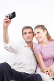 para autoportret biorąc dom kawy z telefonów komórkowych
