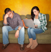 człowiek za pomocą laptopa, ignorując jego daty w coffee house