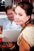 człowiek za pomocą laptopa, ignorując jego daty w coffee house
