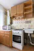 Anapa, Rosja - 25 czerwca 2020: Wnętrze jednopokojowego mieszkania z przestarzałym, biednym wnętrzem