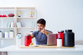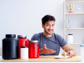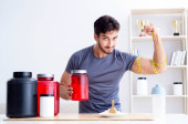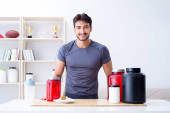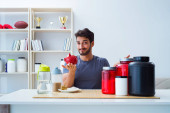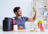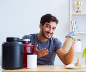 Sportowiec degustacja nowych suplementów białkowych dla lepszych mięśni