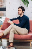 Poważny kandydat zasiadający w zarządzie, przygotowujący się do rozmowy z pracodawcą.