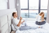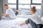 młodzi niesamowici ludzie dyskutujący problemy w sypialni