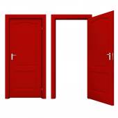 czerwone podwójne drzwi otwarte na białym tle renderowania 3d