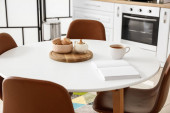 Stół jadalny we wnętrzu nowoczesnej kuchni