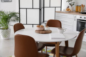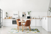 Stół jadalny we wnętrzu nowoczesnej kuchni