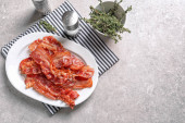 Zdjęcie "smażona suszona wieprzowina na talerzu" może być wykorzystywane do celów osobistych i komercyjnych zgodnie z warunkami zakupionej licencji Royalty-free. Obraz jest dostępny do pobrania w jakości wysokiej rozdzielczości do 5760x3840.