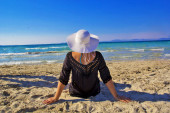 Zdjęcie "młoda kobieta w białym kapeluszu na plaży" może być wykorzystywane do celów osobistych i komercyjnych zgodnie z warunkami zakupionej licencji Royalty-free. Obraz jest dostępny do pobrania w jakości wysokiej rozdzielczości do 5760x3840.
