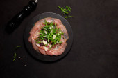 Zdjęcie "Dwie brzydkie czerwone papryki nadające się do gotowania na szarym talerzu. Czarne tło z młynem pieprzowym i przyprawami, widok z góry z przestrzenią" może być wykorzystywane do celów osobistych i komercyjnych zgodnie z warunkami zakupionej licencji Royalty-free. Obraz jest dostępny do pobrania w jakości wysokiej rozdzielczości do 5760x3840.