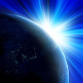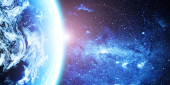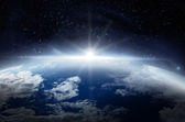 Zdjęcie "Ziemia widziana z kosmosu ze wschodem słońca" może być wykorzystywane do celów osobistych i komercyjnych zgodnie z warunkami zakupionej licencji Royalty-free. Obraz jest dostępny do pobrania w jakości wysokiej rozdzielczości do 5760x3840.