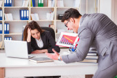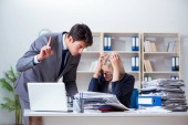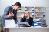 Wściekły szef wściekły krzyczy i krzyczy na swojego sekretarza
