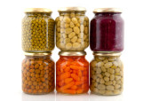 drewnianej skrzyni konserwowanych warzyw