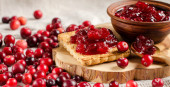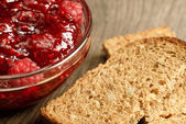Tradycyjny Dżem Lingonberry domowej roboty z pieczonym chlebem