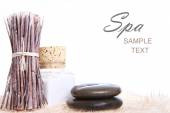 czarny spa kamienie kwiaty i płatki na białym tle na biały z bliska